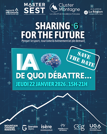 Sharing for the future #6 est fixé ! Hâte de vous retrouver le 22 janvier 2026 pour débattre sur la question de l’IA dans le sport, le tourisme et l’événementiel de demain !